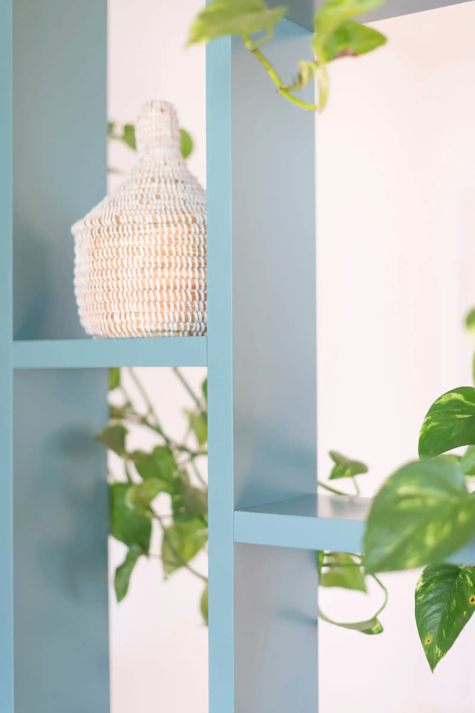 Le claustra intègre des étagères ouvertes des deux côtés, offrant une double fonction de séparation et de rangement. Chaque niche peut accueillir des objets décoratifs, des plantes ou des livres, apportant ainsi de la vie à la structure tout en respectant un équilibre formel.